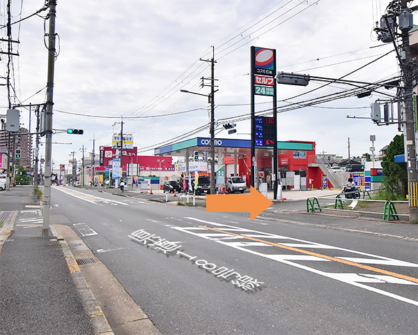 県道18号線沿いコスモ石油の角を北へ曲がってすぐです。